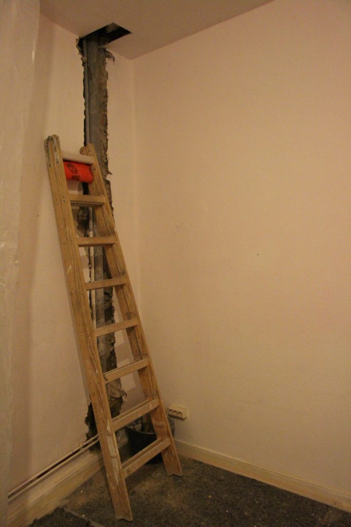 In the middle of December 2018, short before the holiday break we found out from our Hausverwaltung that we would have to endure some pretty major renovations to replace ALL the pipes in the entire building (inside and outside the walls) for legal purposes.   So, since the 7th of January we have had a full invasion of Handwerkers making massive holes in the walls, ceilings and floors of not only the Baumhaus but our WG above, plus no running water or toilets during the days last week…
