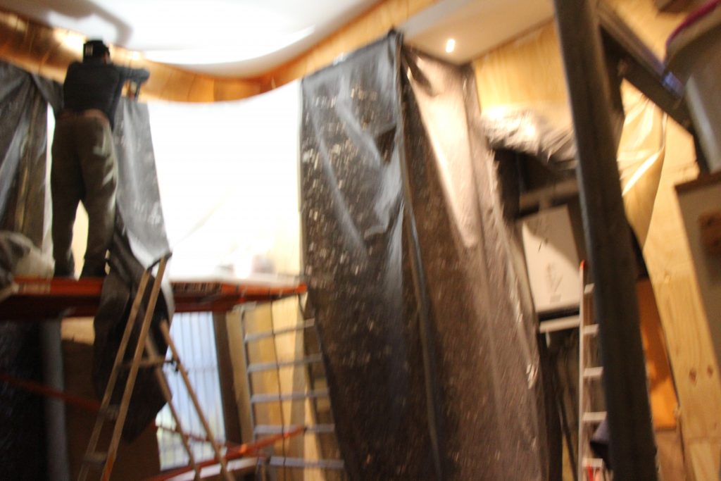 With the holes came lots of loud noise and plenty of dust which could not have come at a worse time because we had 2 big events planned for months.  We have been working full time all week last week and this week so far building tents and protection to keep the dust isolated to some small work areas as well as helping to manage the de-/construction efforts.